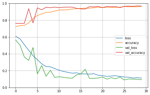 정상인 경우 0, 폐렴의 경우 1을 출력하게끔 정답 데이터를 준비했으며 train데이터의 25%를 검증 데이터로 분류했다.