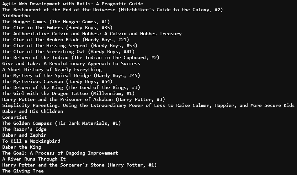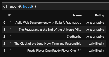 ID가 1인 사용자가 5점을 준 도서중 일부를 캡쳐했다.