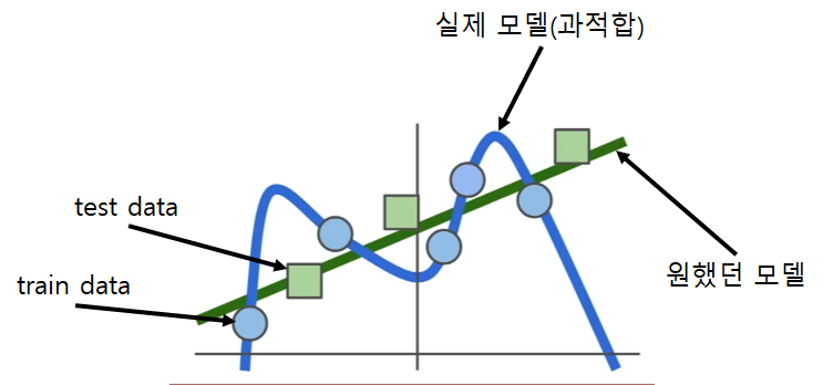 모델 학습을 진행할 때 loss가 0이 되는것을 찾는데에만 집착하면 과적합이 발생할 수 있다. 학습은 train데이터에 대해서만 진행되기 때문이다.