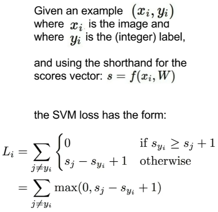 모델 출력 $s_{j}$가 $s_{y_{i}} +1 (margen)$보다 작다면 0